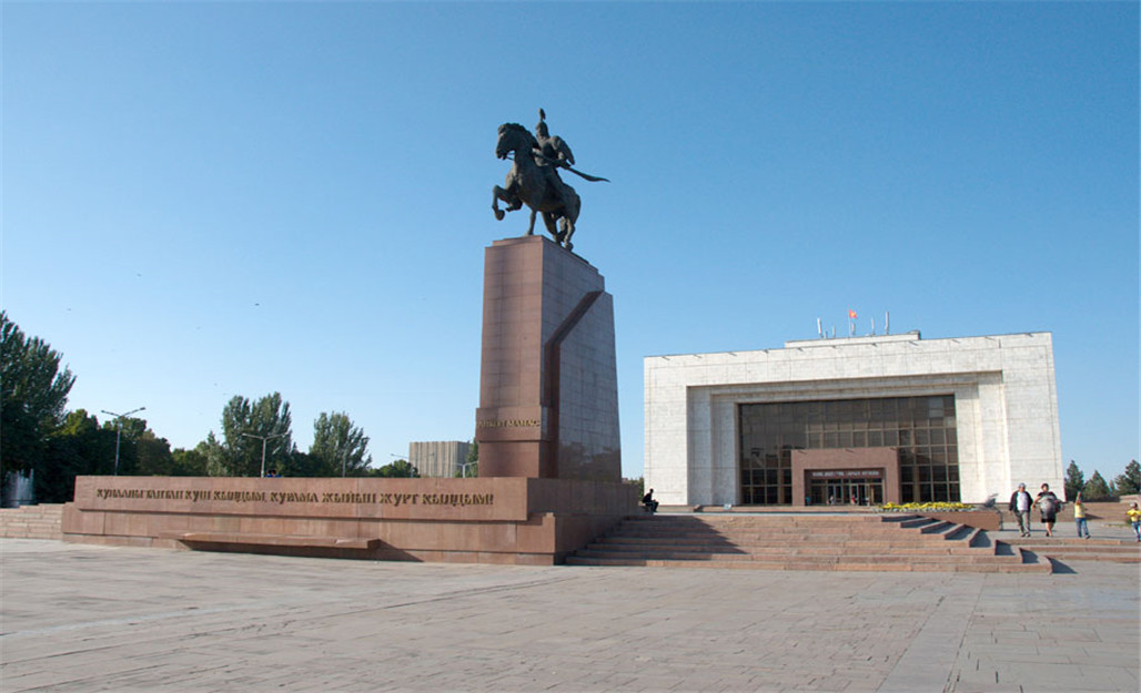 ★【阿拉图广场-Ala Too Square】1991年之前被成为“列宁广场”后续2003年8月被挪到广场博物馆后面,被另一个自由雕像取而代之。每天黄昏时候广场上都举行升降国旗仪式;交通:大巴